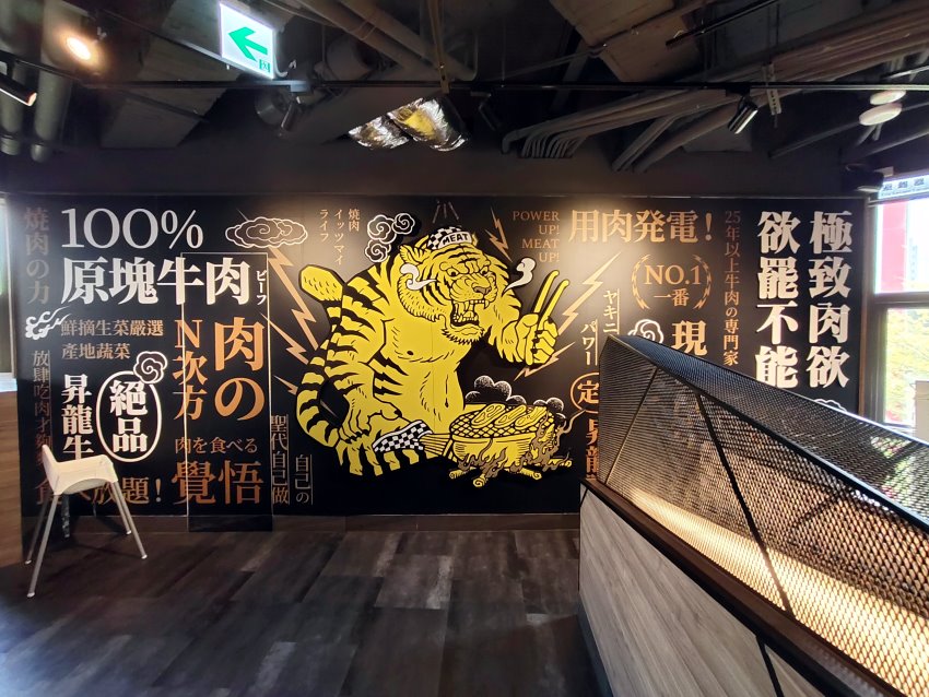 ▼店內以日式風格搭配震撼的立體插圖,看起來真的有種要吃爆肉肉的快感!有趣的是一進門服務人員就會大喊:「肉次方,吃到ㄎㄧㄤ」,讓人熱血沸騰啊~~~