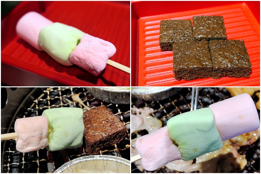 ▼甜點部份我們點了棉花糖、巧克力布朗尼,可惜中間服務人員只來換過一次網子,所以甜點烤起來比較沒這麼方便!棉花糖烤澎一點才會覺得柔嫩好吃,布朗尼吃起來就像是加熱後的巧克力蛋糕,中間沒有什麼流沙的爆點,大家不要太過於期待(笑)!
