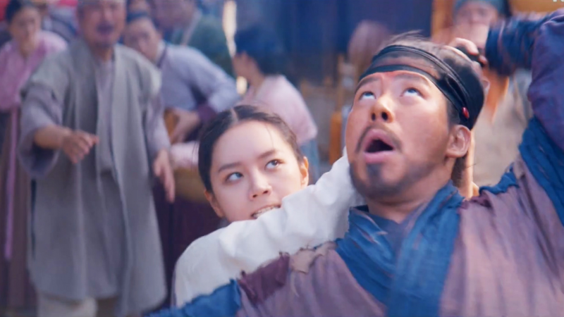 ▲ 惠利到市場賣米賣豆遇到地痞流氓也不畏懼,直接把地痞流氓的頭髮扯了一個洞,笑料百出。(圖:龍華電視)