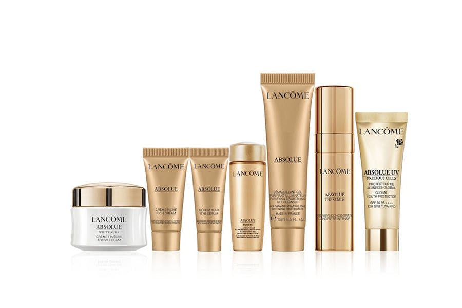 於蘭蔻專櫃購買絕對完美系列正產品滿 NTD 15,000即贈「黃金玫瑰尊寵組」。