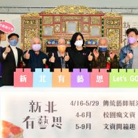 【民眾網葉柏成新北報導】新北市政府文化局去年首創文資結合學校推出「校園瘋文資」系列活動大獲學校好評,今年度推出更精彩多元的「新北有藝思」系列活動,今(16)日由傳統藝師展演打頭陣,在文化局副局長于玟以及詹文贊、許正宗、李萬財、林健兒及金明偉等5位藝師於市定古蹟台北放送局板橋放送所一同宣告系列活動正式起跑,詳細系列活動資訊可至文化局官網https://www.culture.ntpc.gov.tw/查詢。