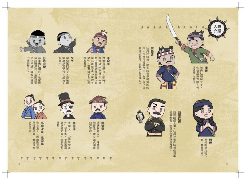 文化處說,這本書仍屬於漫畫藝術創作,故在史實中難免穿插有趣的虛構情節,以可愛、熱血又不失輕鬆幽默的形式,重現歷史事件與現場,並希望藉此喚起讀者對「牡丹社事件」的重視,書末更加上事件歷史背景說明及照片做解說,幫助讀者更了解這起重大的歷史事件。