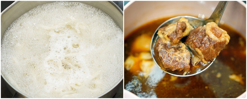 2.湯底用牛大骨、老母雞以文火精燉8小時,熬至骨髓完全釋放至湯頭中。