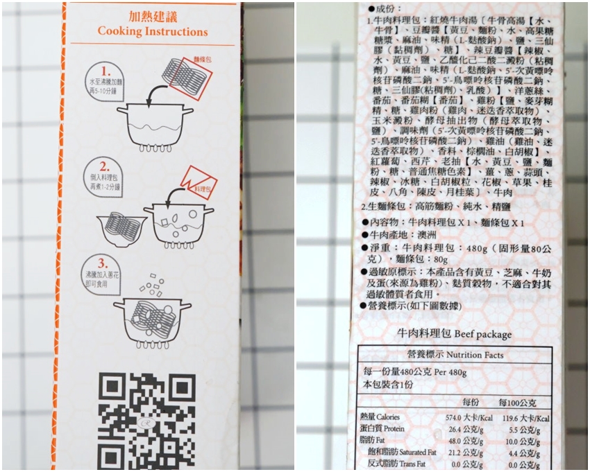 ▼「台北晶華酒店 晶華紅燒牛肉麵」是市面上第一間出自於五星級酒店的常溫牛肉麵,保存更容易,送禮也相當好看!盒側也有詳細的產品資訊與加熱說明,簡單加熱即可享用~~