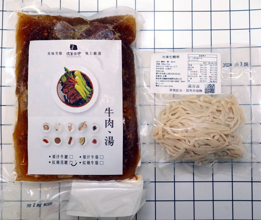 ▼因為是常溫保存的關係,所以牛肉湯包採用鋁箔袋包裝,生麵條則是另外包裝!