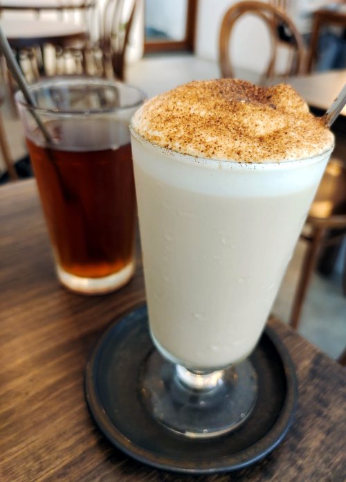 ▼日本黑糖拿鐵,上頭還有一層綿密的奶泡,撒上黑糖粉點綴看起來蓬蓬的很可愛~~喝起來帶有溫醇的黑糖香甜,搭配滑順的鮮奶整個很合拍,不會過於甜膩,很適合不喝咖啡因的朋友享用!蜜香紅茶也可以調整甜度,整個很貼心啊~~