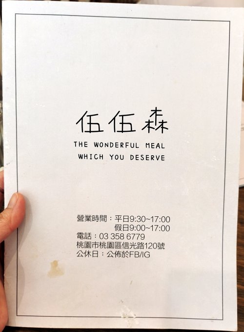 ▼「伍伍森」菜單,同樣走簡約路線,封面還有附上營業資訊!(詳細菜單置於文末)