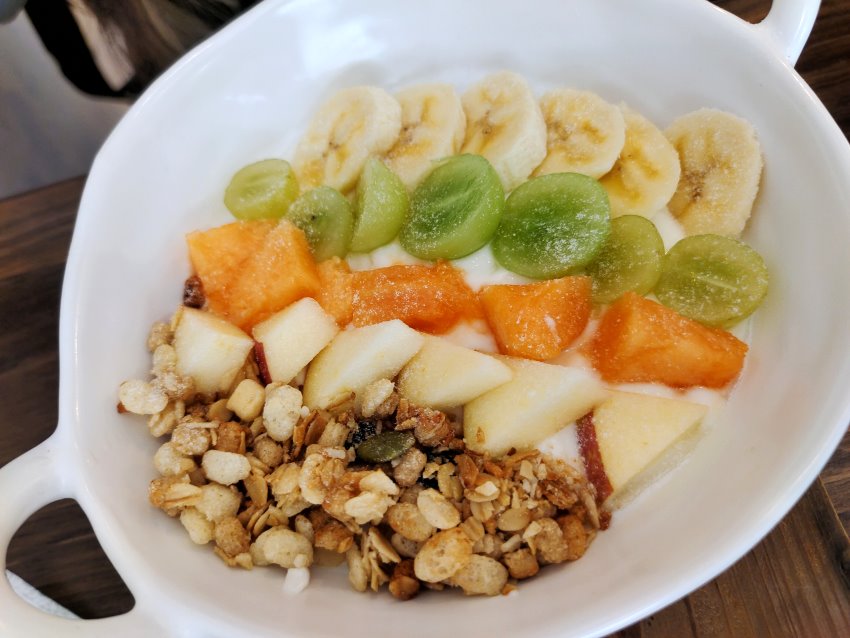▼採用多種水果搭配綜合堅果,可選擇藍莓醬或蜂蜜兩種醬料,朋友選的是藍莓醬,搭配起來也很合拍,吃起來清爽又有飽足感!