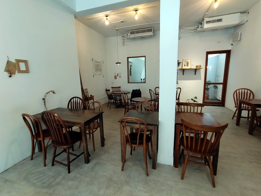 ▼「伍伍森」的用餐空間不算太大,約有8個座位區,平日來還挺愜意的~~假日可能就會比較擁擠些!以純白牆面搭配深色系木質桌椅,加上乾燥花草、小型藝術品點綴,穩重又不失質感,還帶點微文青的風格!