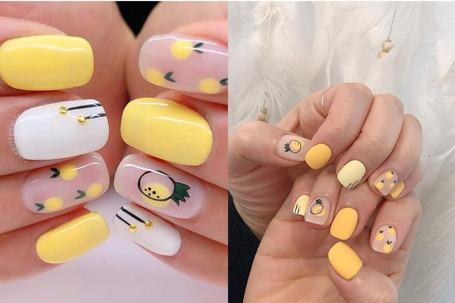 霧面美甲不只秋冬適合,初夏也可以嘗試,可愛的手繪水果塗鴉搭配兩種色階的奶黃色,直接讓手指多一分俏皮感~