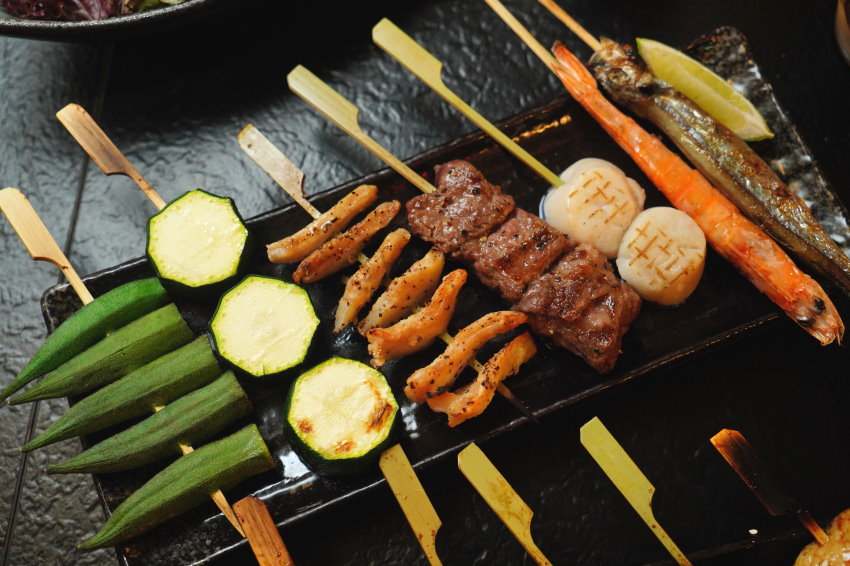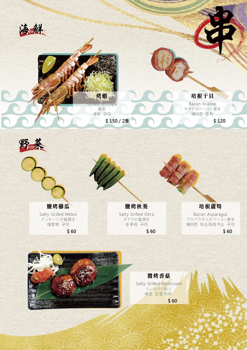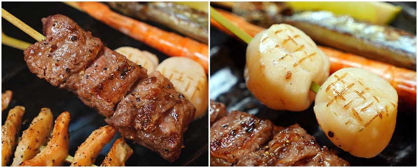 ▼另外一盤則是有鹽烤秋葵、鹽烤櫛瓜、雞軟骨、鹽烤牛肋串、烤干貝、烤蝦、烤柳葉魚等,吃這麼多肉當然也要來點烤蔬菜均衡一下!