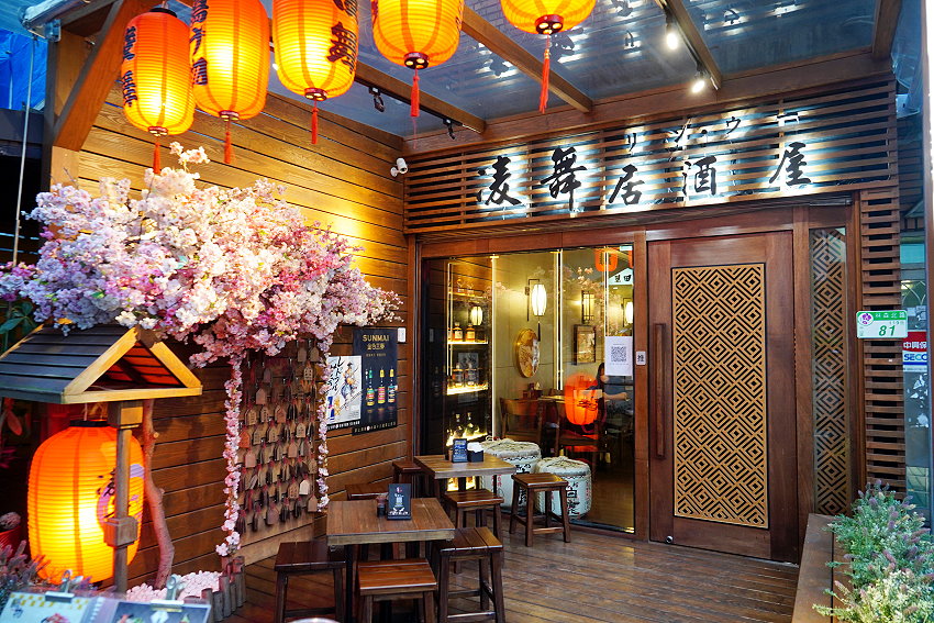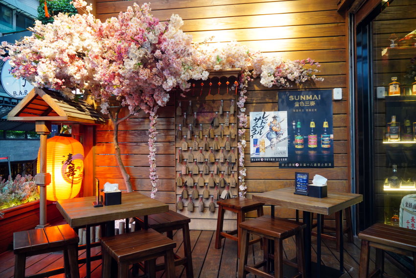 ▼「凌舞居酒屋」外觀就非常出色,有一整棵的粉紅櫻花樹,搭配大紅燈籠、繪馬、酒樽等裝飾,有種一秒來到日本的錯覺,也是不少朋友IG拍照打卡的熱點!