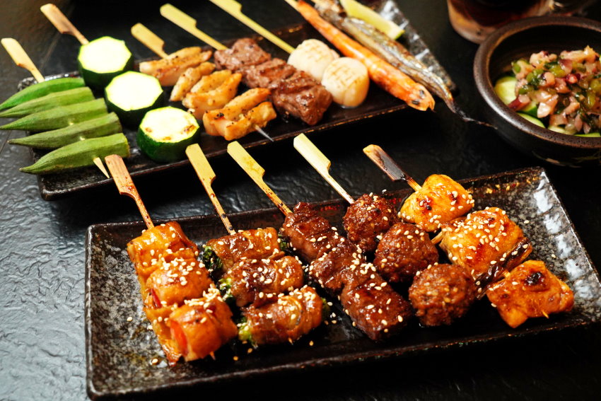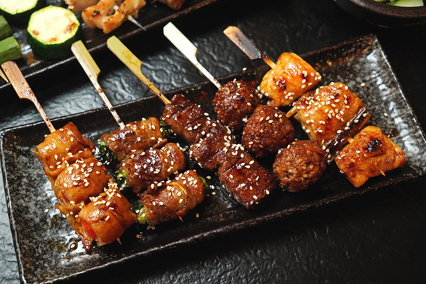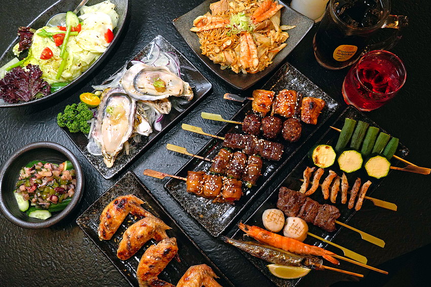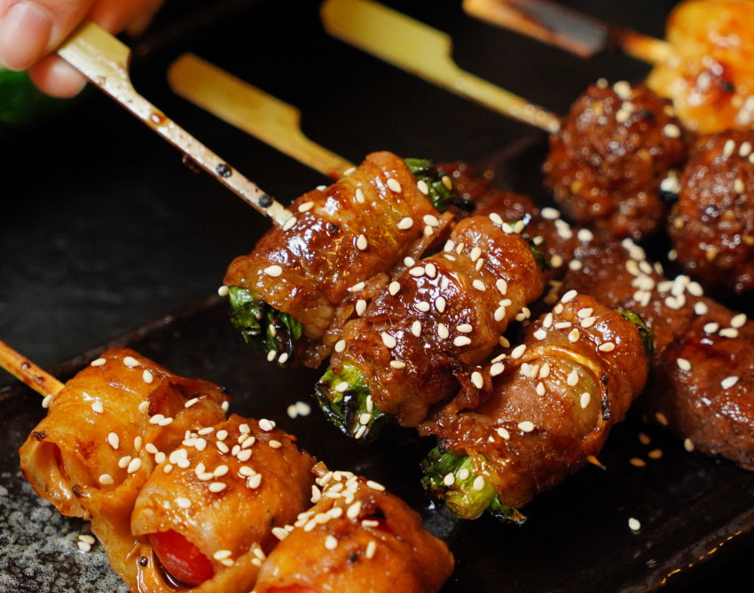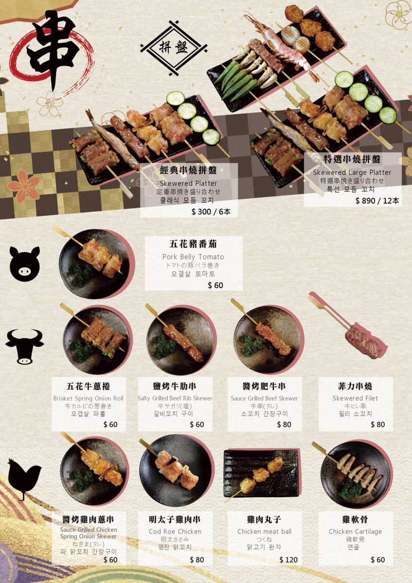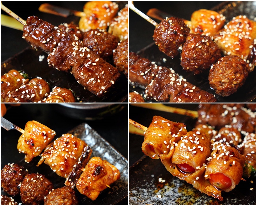 ▼串燒內容有五花豬番茄、五花牛蔥捲、醬烤肥牛串、雞肉丸子、醬烤雞肉蔥串,採用特製醬料下去燒烤,上頭再以白芝麻點綴,光看就讓人食指大動!