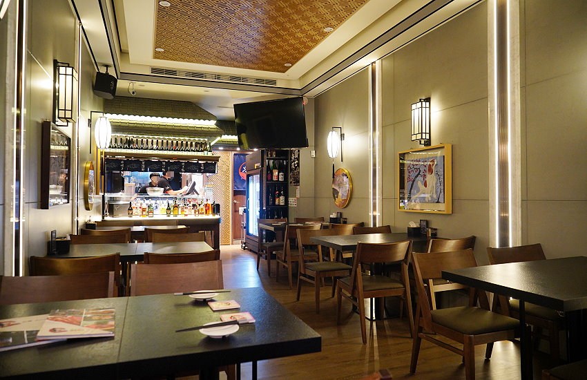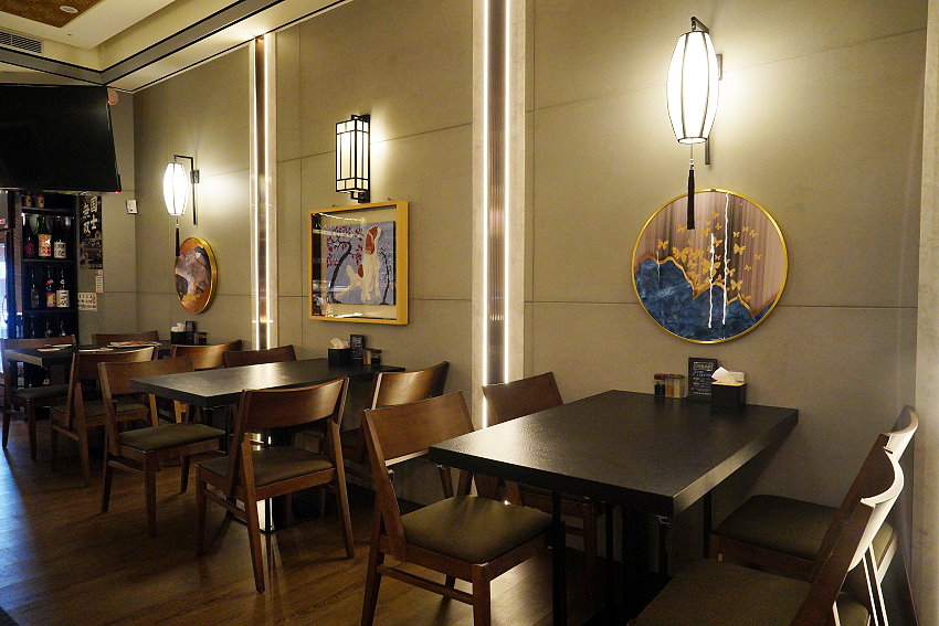 ▼這裡大多以四人座為主,也可以彈性併桌,桌距與動線都相當寬敞~~牆面上掛有線條為主的日式燈飾與細膩的畫作,加上深色系木質桌椅更多了溫潤的質感!