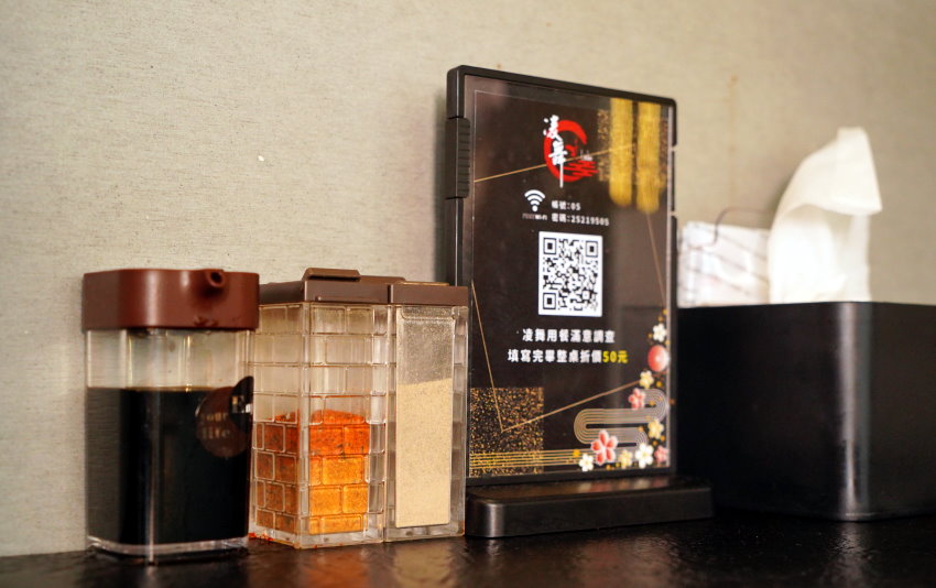 ▼桌邊還有提供醬油、七味粉、胡椒粉、紙巾、牙線棒等,此外掃描QR Code填寫滿意度調查表每桌還可折價50元,有興趣的朋友也可以自由參加!