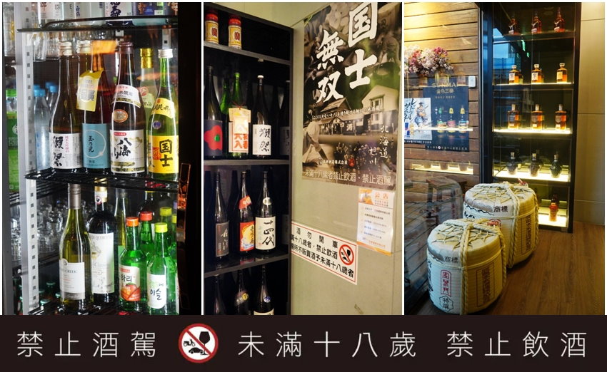 ▼這裡也多款日本清酒、威士忌、紅白酒、燒酎、韓國燒酒等,像是知名的獺祭、十四代等來這裡都能品飲得到!(未滿十八歲請勿飲酒)