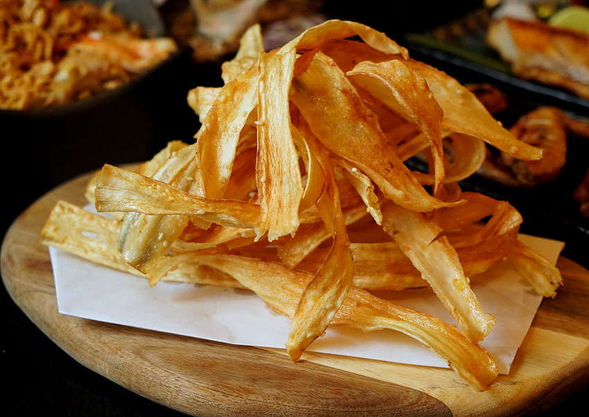 ▼酥炸牛蒡(粗),這道也是推薦必點下酒良伴,薄酥脆口的牛蒡條帶點淡雅鹹香滋味,卡滋卡滋的好涮嘴,就連冷掉都好好吃!(未滿十八歲請勿飲酒)