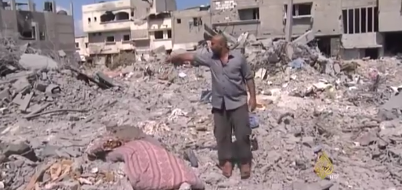 他們與七十歲的母親,現在被安置在加薩北部 Jabaliya 難民營的聯合國學校中 (UNRWA school),無家可歸。