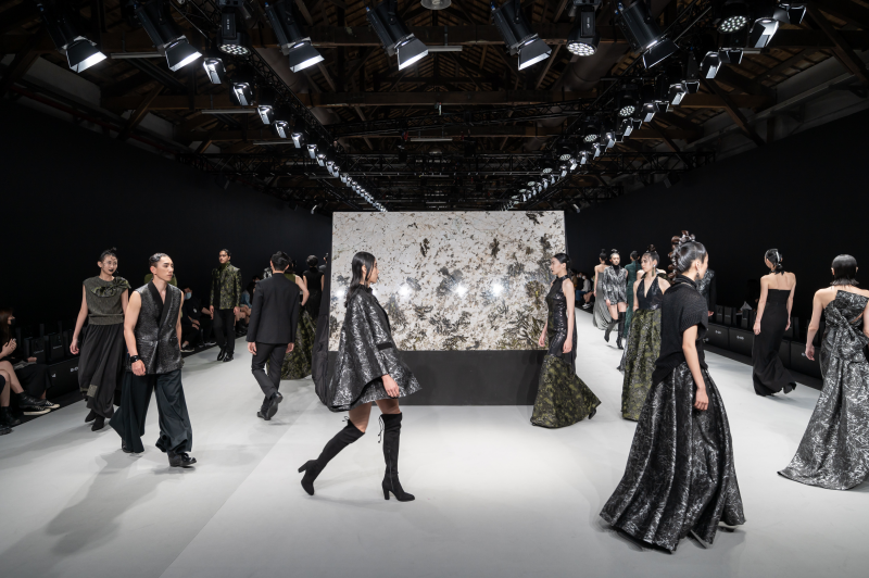 秀上更邀請新銳編舞家李冀禹結合東方現代舞蹈和西方音樂,在大理石包圍下起舞,讓觀眾能聚焦在奢石與燈光的流轉下所產生的完美光芒,為整場秀帶來高潮與驚喜,完美演繹了時尚與藝術的風采。「無極」也代表著不受限的概念,東西方元素的結合就像石材跟織品,看似衝突卻又能融合在一起。不論工藝、表演、燈光創新的跨界合作都令當天來賓讚嘆不已。