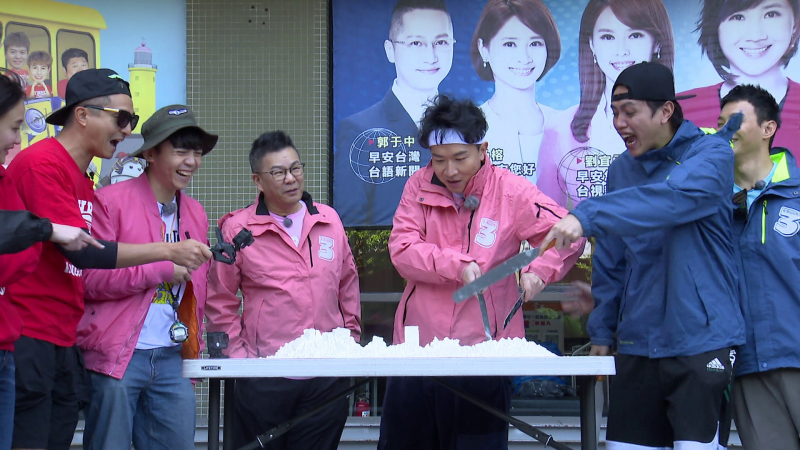 本集為慶祝台視60歲生日,其中一關全體輪流挑戰切麵粉蛋糕,若上方蠟燭掉落時即為淘汰,由於遊戲的前兩回合,大家都相當謹慎,深怕一個不小心麵粉蛋糕崩塌,因此王少偉提出可以「雙刀」同時切下,以增加遊戲難度,打頭陣的沈玉琳一切下蛋糕就已分崩離析,輪到張立東時蠟燭更是搖搖欲墜,主持人黃豪平笑稱張立東姿勢神似夜市「炒冰老闆」,張立東也立刻比劃模仿,不料動作太大,蠟燭因震動而隨即掉落,現場眾人笑成一團,張立東則無奈的說:「這不算啦,豪平叫我模仿的欸。」。