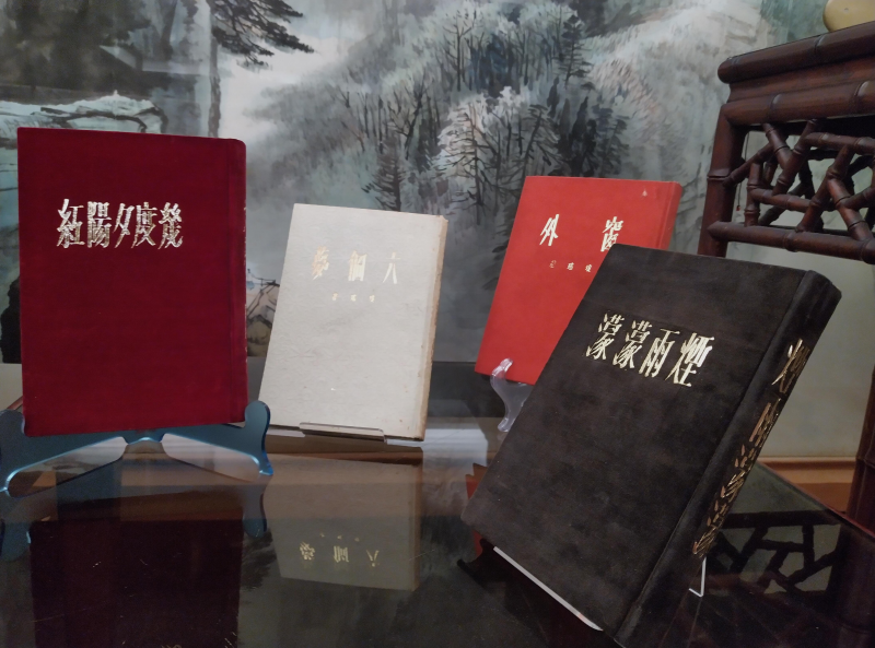 活動現場亦由故事館籌備團隊精選最能代表瓊瑤在大眾文學、影視戲劇等各領域輝煌成就的精采文物。瓊瑤於文壇崛起的代表作《窗外》、《煙雨濛濛》、《幾度夕陽紅》及中短篇小說集《六個夢》,皆以超過半世紀、外界從未見過的絲絨精裝紀念封面亮相。此外,尚有瓊瑤手稿、平日使用的眼鏡,還有經典戲劇《鬼丈夫》的金色面具,陳列於客廳當中。