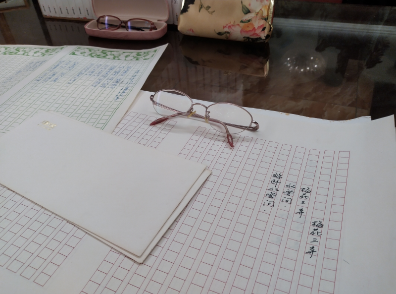 ▲ 瓊瑤手稿以及日常使用的眼鏡。(圖:瓊瑤故事館籌備處)