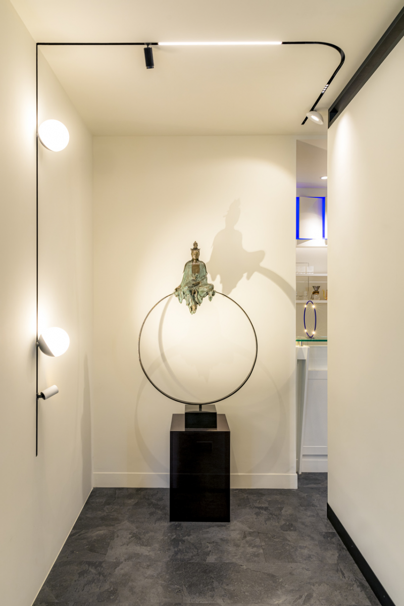 磁吸式的R角軌道燈,因應各空間配置靈活運用,創造出不同以往的當代美感,提升藝術品的質感。