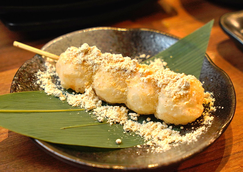 ▼酒足飯飽之後,沒想到店家還會免費招待一份甜點,只好拿出另外一個胃了(笑)!甜點可以四選一,其中一份我們選的是日本烤麻糬,吃起來外酥內軟Q,搭配黃豆粉吃起來微甜又不膩,熱呼呼的好好吃!