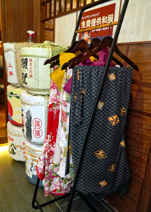 ▼這裡也有免費提供和服換裝,不管男生女生通通有,大家可以自行挑選喜愛的花色,就可以到清酒燈籠牆旁拍張日式美照啦!!