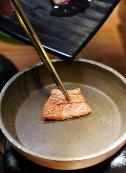 ▼霜降翼板,不管是厚度、油花都讓人滿意~~多了火光炙燒的過程讓人彷彿在看一場精彩的秀,也更加期待它的美味!