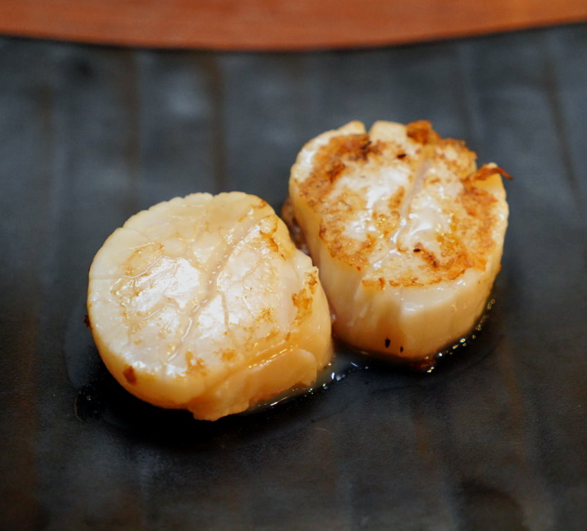 ▼干貝也是烤至外酥內嫩,一口咬下即能吃到兩種不同口感,加上爆滿的甘甜湯汁,有種濃濃的幸福感!