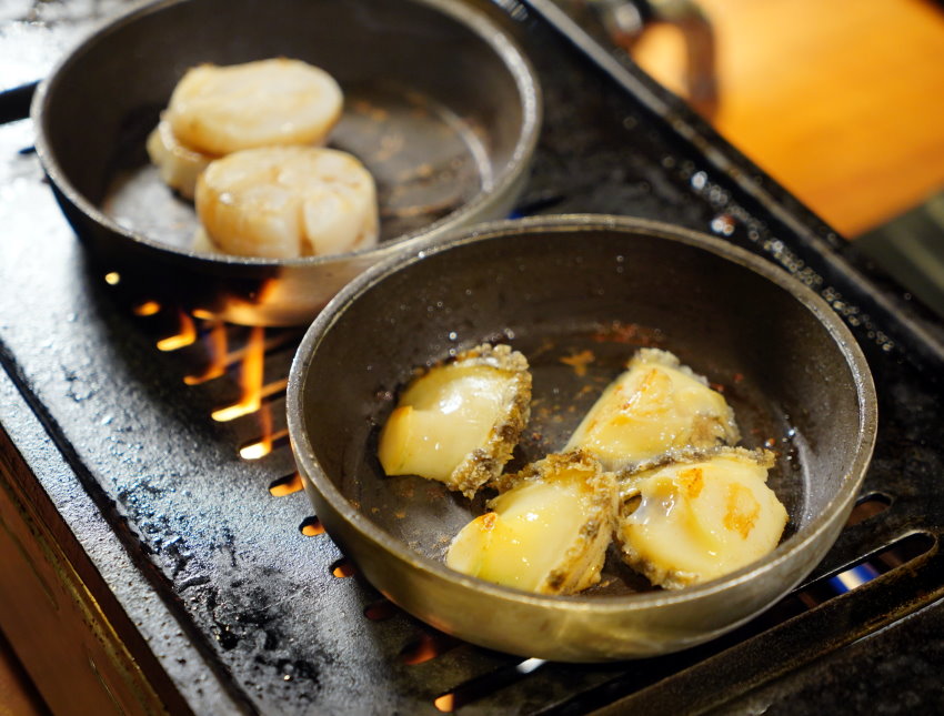 ▼接下來上場的是干貝、鮑魚等高檔食材啦~~只能說服務人員烤功同樣也很厲害,讓客人能吃到最適當的熟度與美味!