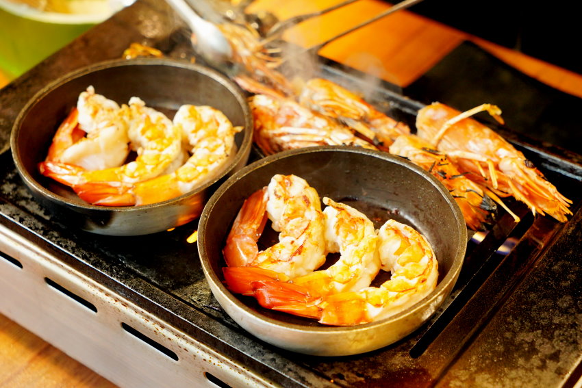 ▼燒烤過程中不時傳出迷人的燒烤香氣,而且一次就能品嚐到天使紅蝦、天鑽海大蝦、草蝦等三種不同口感的蝦子,讓我們好期待啊!