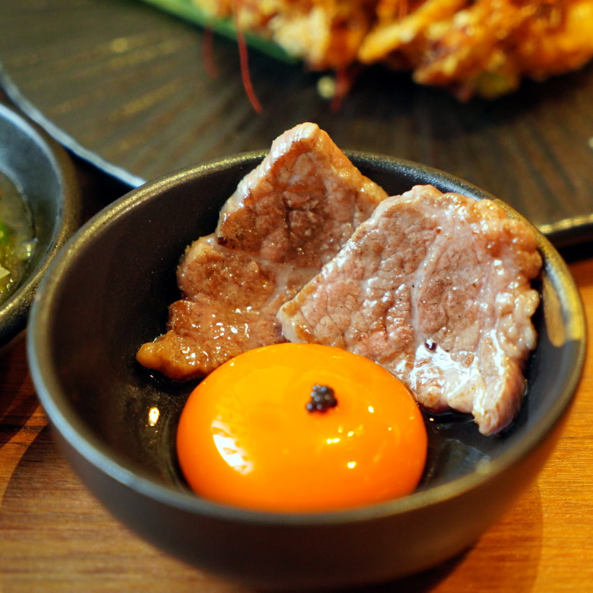 ▼享用前先將蛋黃戳破稍微攪拌均勻即可,肉片吃起來柔嫩帶點微微嚼感,沾附蛋液後更多了滑順蛋香,整個鮮甜味十足!
