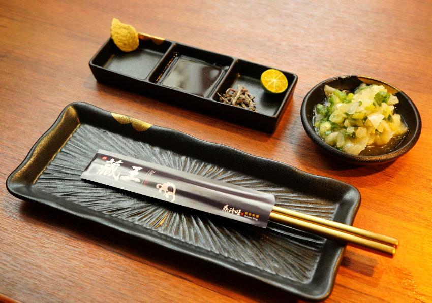 ▼桌上已經擺放好餐具,入座後還會送上山葵、燒肉醬、金桔、昆布鹽等醬料及蔥鹽,吃不夠的朋友都可以免費續加唷!