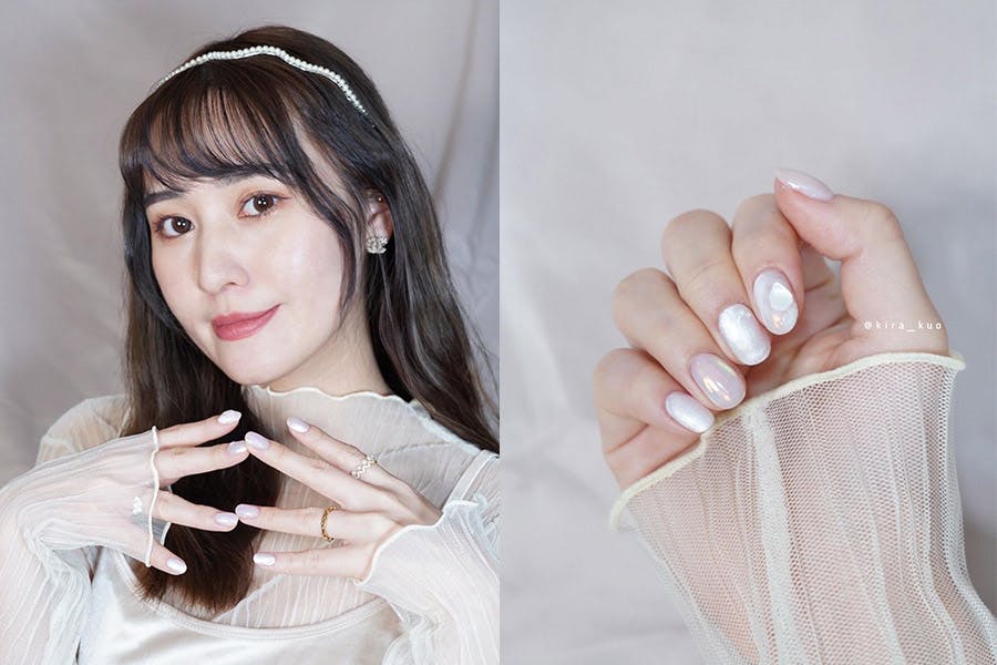 誰說秋冬才適合做貓眼造型!Kira K以貓眼搭配今年春天韓國最流行的雨滴元素,讓白色系美甲更有層次與變化,隨便拍都看起來像仙女下凡。