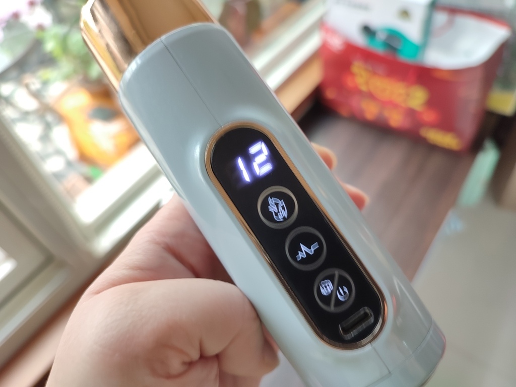 電波溫熱功能的位置在觸控面板下方的兩塊金屬片(使用時建議直接接觸肌膚)。電波有六段強度可依您的感受來做自由調適,對準穴道,就會產生猶如輕微電擊的舒暢感覺,促進身體活絡,讓肌肉放鬆達到舒緩效果。建議第一次使用時從1檔開始,先讓肌膚習慣強度,再慢慢增強強度~