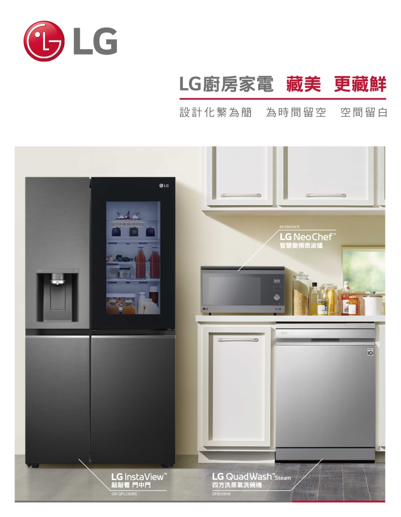 近年來因疫情影響,越來越多消費者習慣在家用餐,對於家中食材保鮮跟飯後餐具清潔亦越趨講究。榮獲德國紅點設計獎註6的InstaView™ 敲敲看門中門冰箱除了具有革命性創新功能還兼顧美學,輕敲InstaView™玻璃面板,Knock-On 功能瞬時照亮內部,不只取物便利,更節能省電。不僅如此,LG看準廚房整體美學商機,LG QuadWash™ Steam四方洗蒸氣洗碗機以創新技術提高性能,採用TrueSteam™蒸氣潔亮科技,讓100度C沸水產生的高溫蒸氣能完整覆蓋餐具表面,微小水分子徹底潔亮餐具,有助於減少水漬產生,輕鬆溶解並分離難處理的油漬及頑固髒污。活動期間購買InstaView™ 敲敲看門中門冰箱指定機型,登錄成功即可兌換三年份LG原廠濾心;購買LG QuadWash™ Steam四方洗蒸氣洗碗機指定機型隨貨送LG x Finish 潔淨光亮套組禮盒一盒,登錄成功加碼再送一盒。