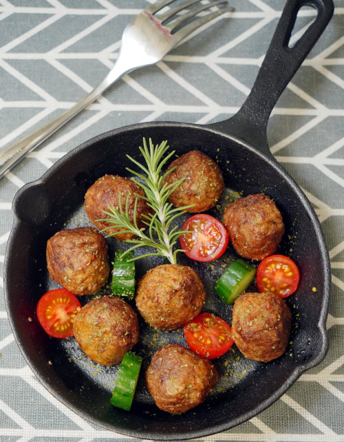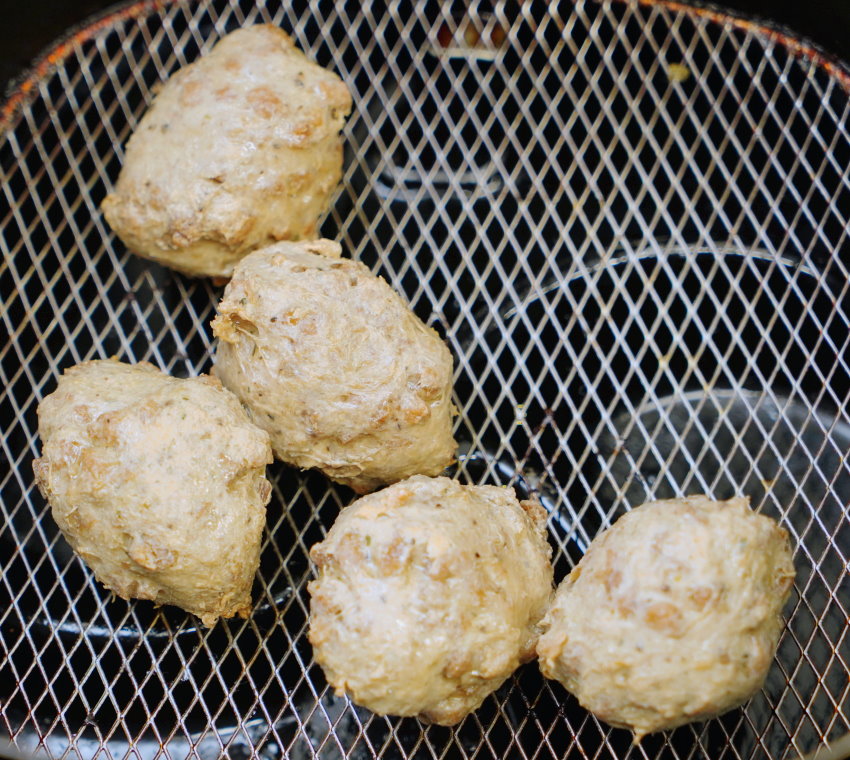 3.跟傳統素肉丸相比,含鈉量少了60%,吃起來更加安心;料理方式簡單,採用氣炸或香煎都可以。