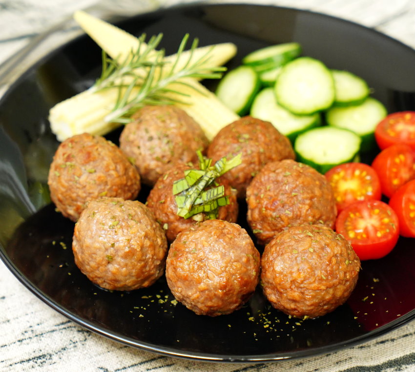 1.主要以碗豆蛋白、燕麥、馬鈴薯、洋蔥、蘋果製成,口感接近傳統肉丸,碳足跡僅傳統肉丸的4%,相較傳統肉丸來說更可永續發展。