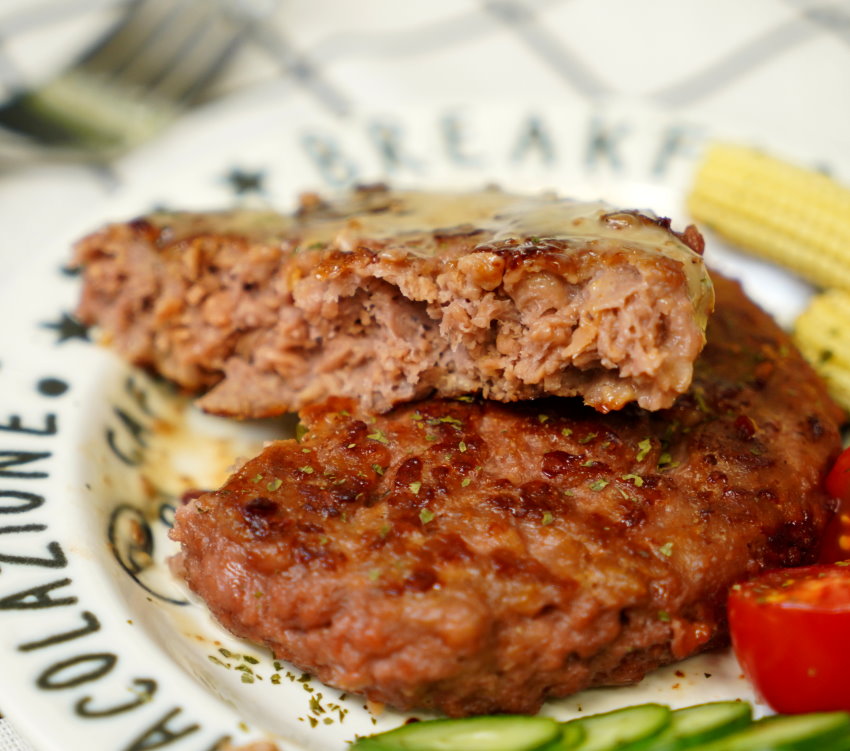 ▼裡頭有加入石榴果粉、紅甜菜色素等,加熱後的植物肉排看起來還是帶點粉紅色澤;第一口咬下會真的以為在吃漢堡排耶~~不僅鮮嫩多汁,而且還吃得到肉感,搭配醬料根本吃不出來是植物肉,跟素丸子吃起來有點不太一樣,素丸子通常顆粒感較重,或是較為柔軟,這款植物肉排吃起來很像仿真的牛肉漢堡排,不論外型、口感都很類似;除了單吃之外還可以做成漢堡、三明治、捲餅、丼飯、潛艇堡、鐵板燒等多元料理,而且營養更加分不少!接下來就要開始來試吃大家期待的植物肉丸啦~~