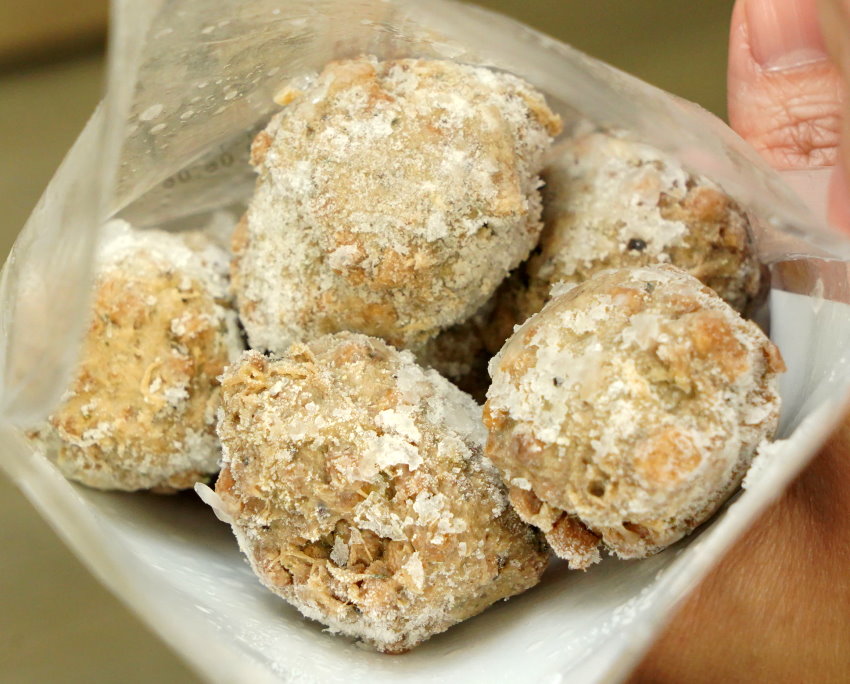 ▼「天天里仁 簡單廚房植物肉丸」一包200 g,裡頭約有9大顆,形狀看起來不是很渾圓(笑)!