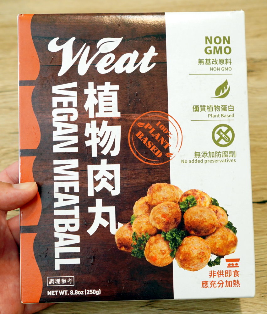 ▼「Vveat 植物肉丸」一盒是250 g,打開外盒裡頭還有獨立袋裝,感覺肉丸不大顆,一份約有14顆左右~~也算是滿適合小家庭享用!