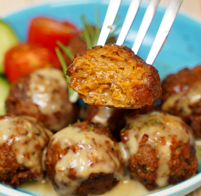 ▼一口咬下不僅飽滿多汁,還帶有Q彈的顆粒口感,真的有種在吃肉丸子的錯覺呢!這款素肉丸採用碗豆蛋白製成,不僅沒有豆類容易過敏的問題,而且飽足又不容易脹氣,富含高蛋白質與豐富膳食纖維,享受口感同時也能吃進不少營養!