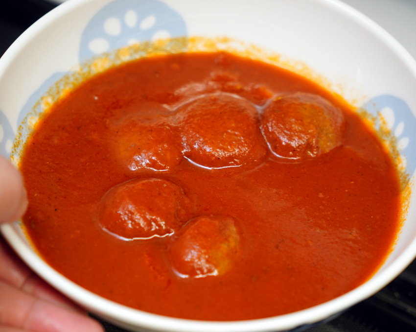 ▼素肉丸搭配紅醬超級合拍,吃起來口感紮實Q彈又夠味,完全吃不出是素丸子啊!