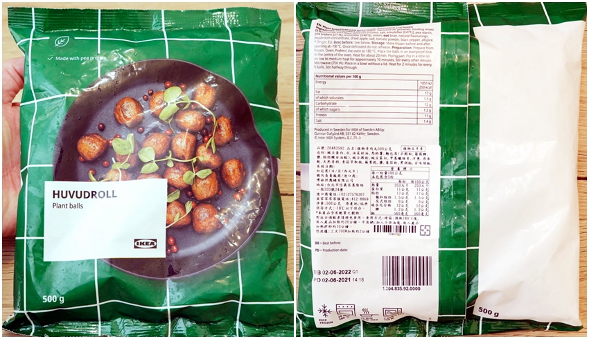 ▼「IKEA 植物素肉丸」一包足足有500 g,算是份量十足的一款!裡頭的素肉丸乍看之下還真的很像瑞典肉丸,連氣味也很類似!