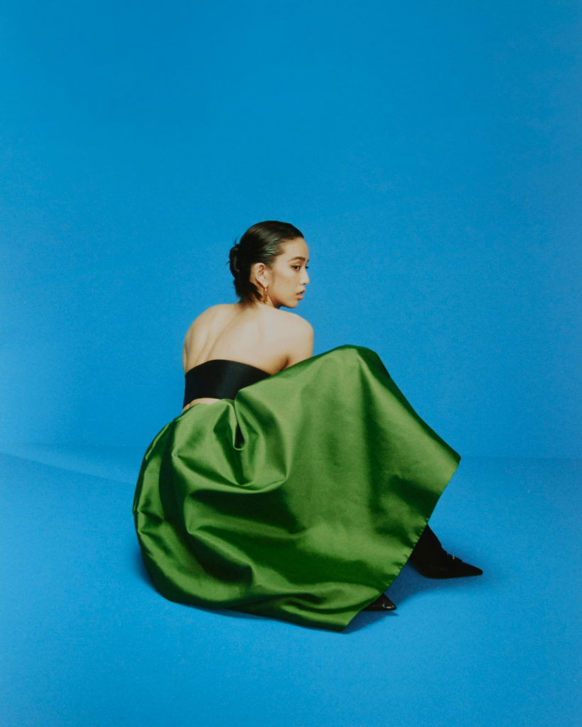 白色是一覽無遺的,藍色不會說謊,複雜則全部被埋進了綠色裡面,我們想向這三個顏色致敬,把整個空間的元素收乾淨,只有一塊簡單的背景,純粹的陳庭妮,一盞劃出輪廓的光,然後再洗出一瞬間只有一張的相片,就像把水蒸餾,留下了一道沒有雜質的輪廓!重建生活秩序的五月,該把視線留給最性感的自己:「去做就對了!」