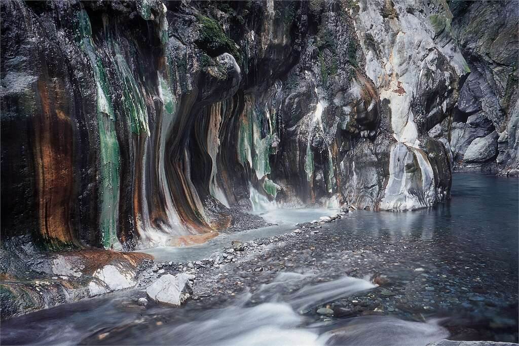 走南橫公路途經霧鹿峽谷,可以看見自溪谷噴湧而出的水蒸氣,溫泉的礦物質在岩壁上留下各種色彩,成為大自然最偉大的作品。