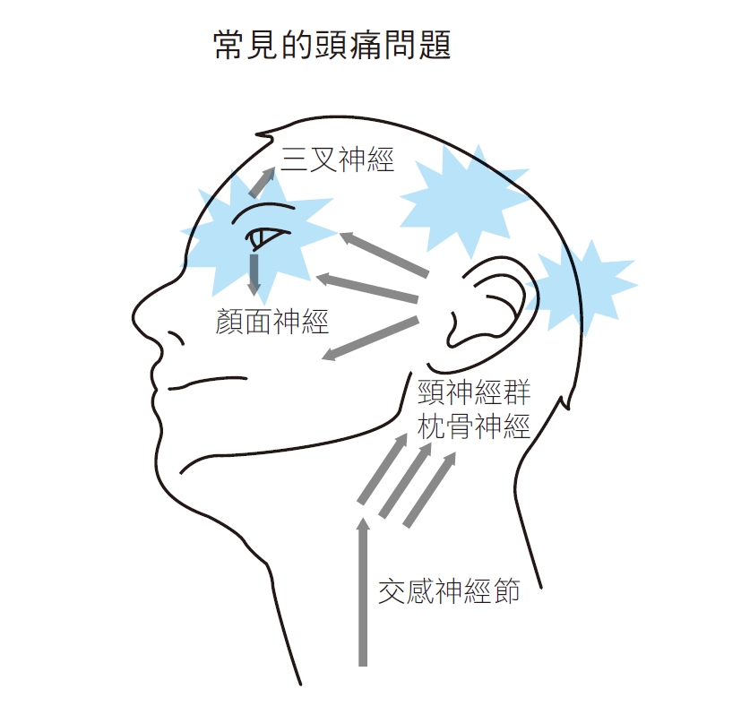 頭頸痛根源在頸神經、三叉神經、顏面神經