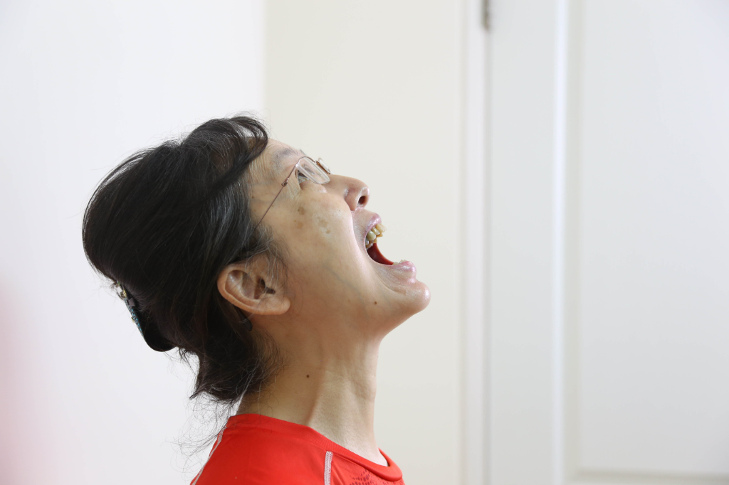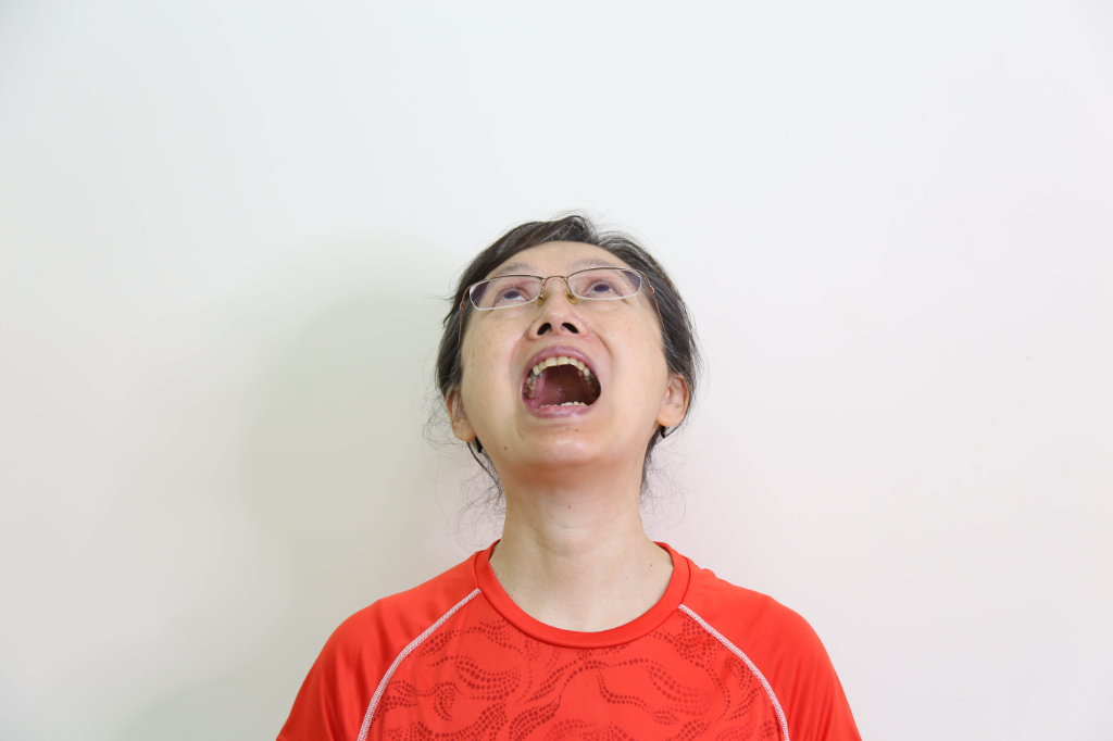 (2)張眼仰望,同時用力張大嘴巴,停留3秒,保持自然呼吸。